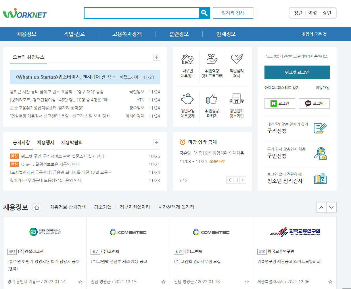 워크넷메인 - 구인/구직