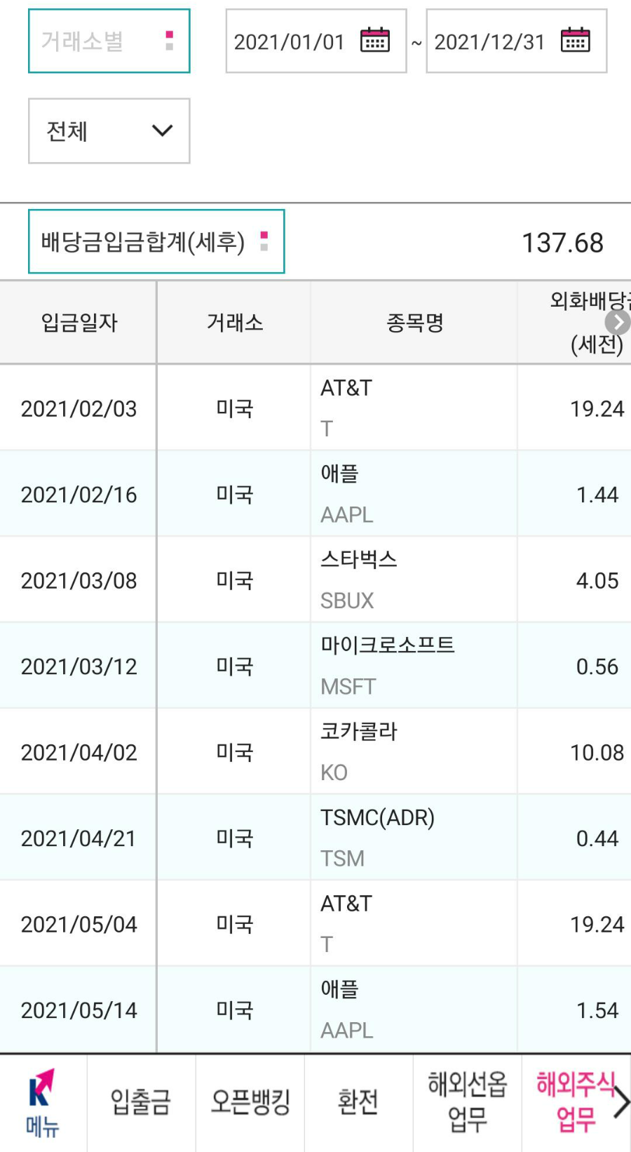 해외 키움증권 배당금 입금내역을