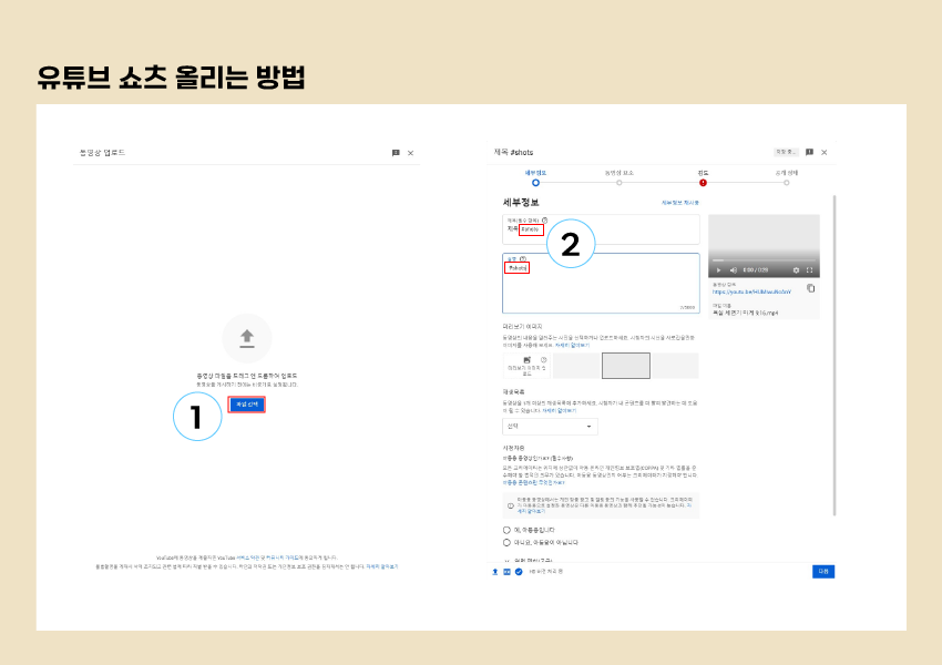 업로드를 할 때 제목 또는 설명란에 #Shorts를 붙여야